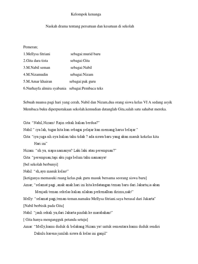 Naskah Drama Tentang Persatuan Dan Kesatuan Di Sekolah Pdf
